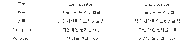 또한 포지션은 현재의 시점에서 내가 가진 금융자산의 앞으로의 상태를 표현한다 고도 할 수 있습니다.